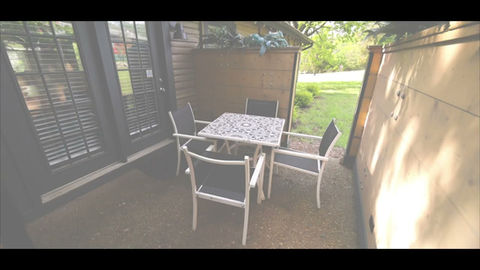 Experience the best of outdoor living with Serenity Cabin’s thoughtfully designed exterior spaces. The cabin’s front deck invites you to relax and soak in the peaceful Ozark surroundings.